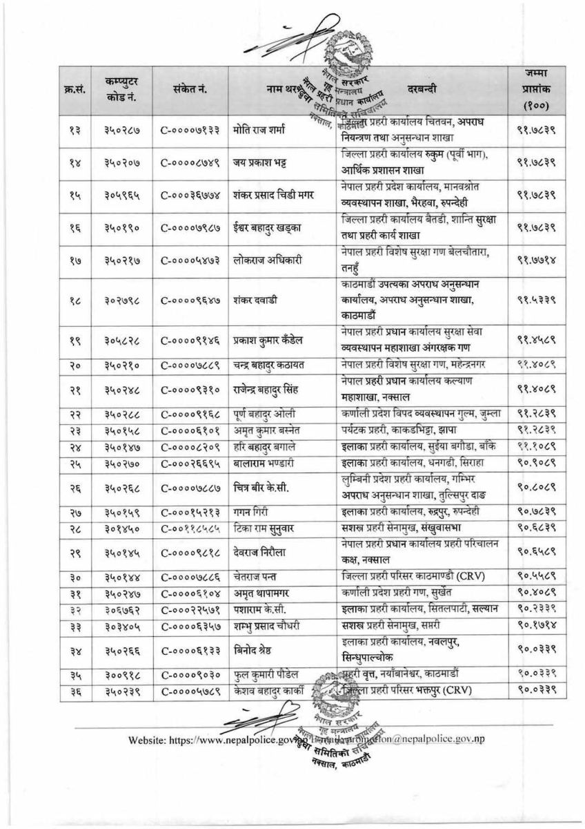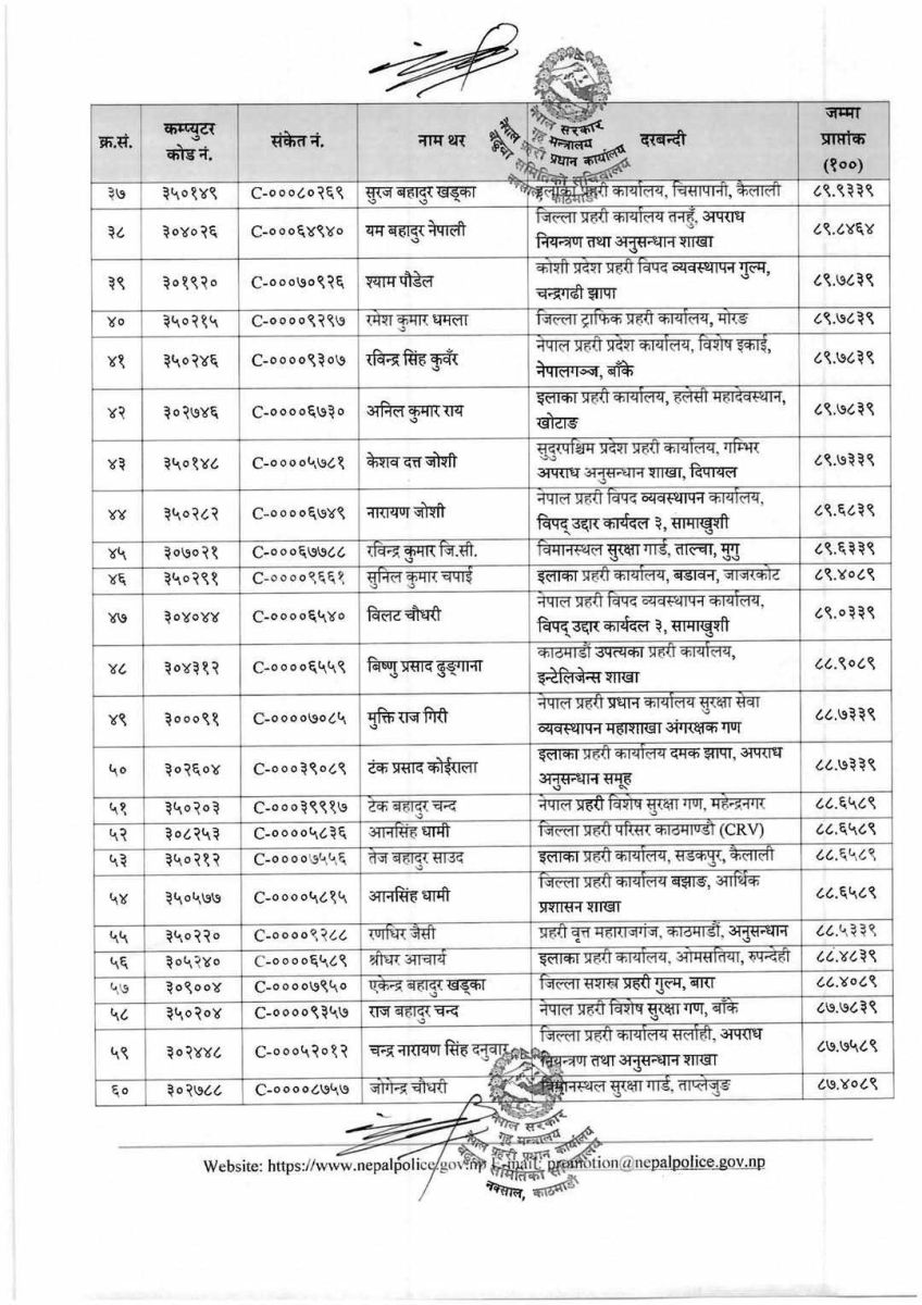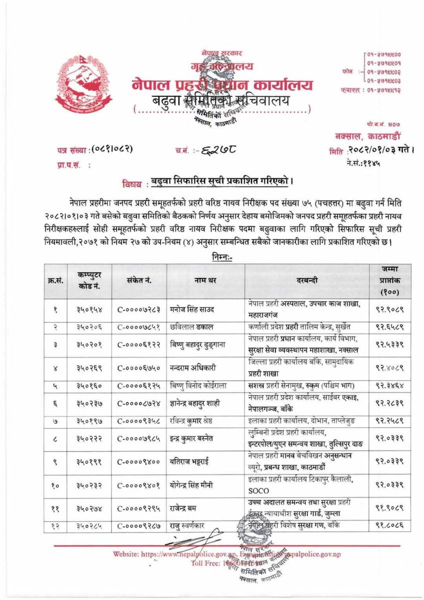 काठमाडौं । नेपाल प्रहरीको जनपद समूहतर्फ ७५ सई वरिष्ठ सईमा बढुवा भएका छन् ।