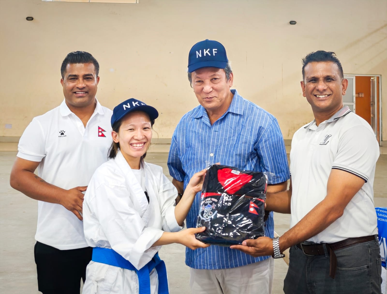 काठमाडौं । उज्बेकिस्तानको टाशकन्टमा आयोजना हुने २१औं एसियाली सिनियर कराते प्रतियोगिता (AKF) मा सहभागी हुने नेपाली राष्ट्रिय टोलीका खेलाडी, प्रशिक्षक तथा अफिसियलहरूलाई नेपाल कराते महासंघले ट्रयाकसुट र टोपीसहितको खेल पोशाक वितरण गरेको छ।