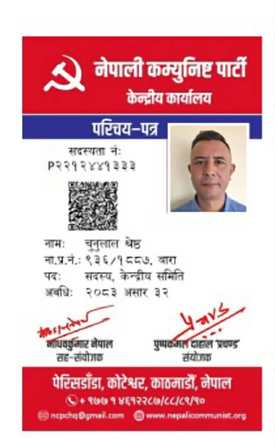 श्रेष्ठले आइतबार आफ्नो सामाजिक सञ्जाल फेसबुकमार्फत केन्द्रीय सदस्यको परिचयपत्र सार्वजनिक गर्दै उक्त जानकारी दिएका हुन। उनले सार्वजनिक गरेको परिचयपत्रमा पार्टीको केन्द्रीय सदस्य रहेको उल्लेख गरिएको छ।