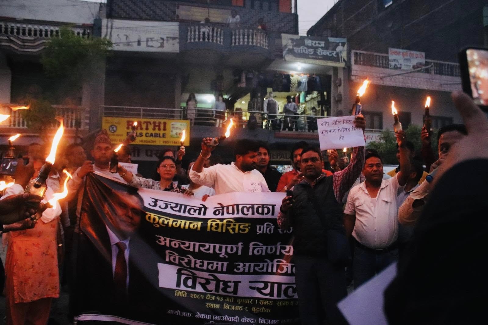 कुलमानको सर्मथनमा माओवादी केन्द्र, रास्वपा र राप्रपाव्दारा निजगढमा प्रदर्शन